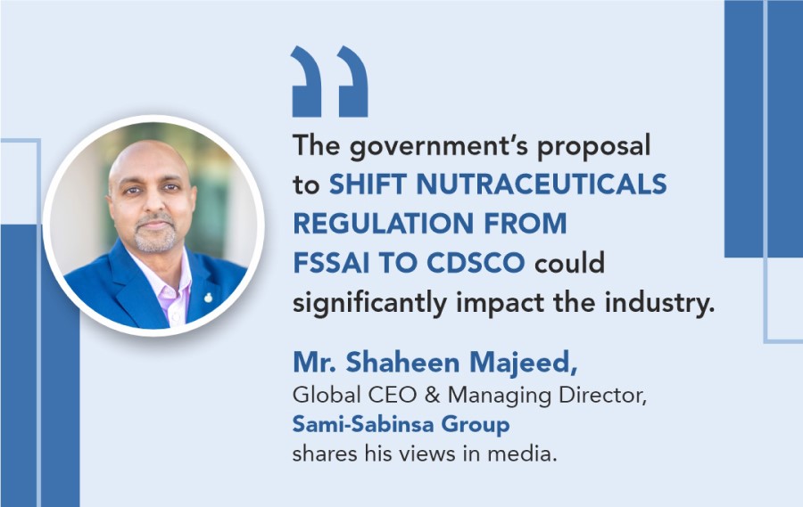 The government’s proposal to shift nutraceuticals regulation from FSSAI to CDSCO could significantly impact the industry. Mr. Shaheen Majeed, Global CEO & Managing Director, Sami-Sabinsa Group shares his views in media.